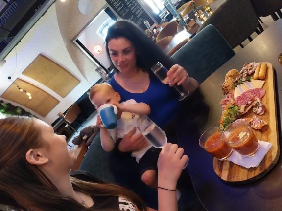 We ontvangen jullie met een glaasje bubbels. Aansluitend serveren wij onze bunkerplank met onder andere een soepje, koud/ warme hapjes, een zakje frites en een drankje naar keuze (bier, fris, wijn). Voor alle mama’s hebben wij een goody bag!