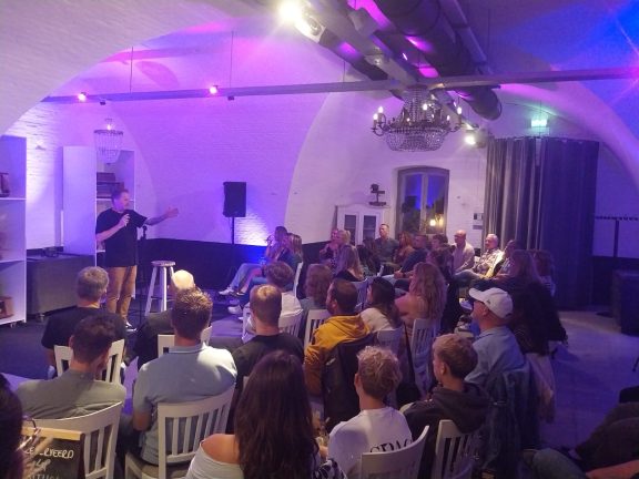 Kom binnen bij Fort Westoever voor een avond vol gezelligheid en hilariteit. Schuif lekker aan voor een knotsgekke Live Stand Up Comedy Show met tal van ervaren en aanstormende comedians. In een knusse cafésetting wisselen ruim vijf tot acht verse talenten en profcomedians elkaar af met korte shows. Zij brengen hun betere grappen en oneliners en testen hun nieuwste vondsten en geestige anekdotes. Een interactieve en onderhoudende try-out show met diverse karakters en types.